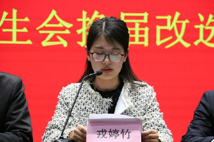 第二项议程由木工程学院分团委学生会书记戎婷竹老师发言,首先预祝本次大会的顺利召开,并代表学院全体师生对上一届团学干部在学院大学生思政教育和第二课堂建设中所发挥的积极作用以及为学校的改革、发展、稳定做出的贡献表示感谢,最后也祝愿新一届团学干部继往开来,再创辉煌!
