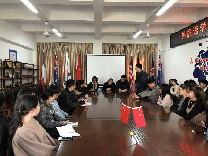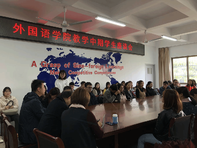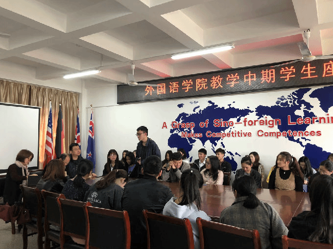 根据2018-2019学年第二学期期中教学检查工作的安排,外国语学院于4月16日中午12.30在6号楼辅楼211会议室召开学生座谈会。出席此次座谈会的有包通法院长、刘荔副院长、俞昊波副书记和16-18级各班级学生代表。