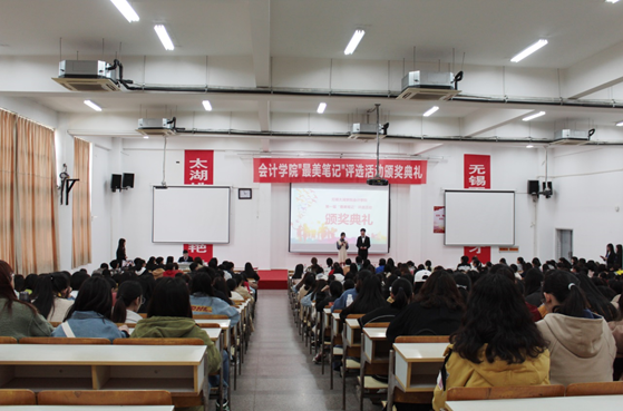颁奖典礼接近尾声,此次“最美笔记”活动的成功举办,加强了会计学院的学风建设!同时也增强了同学们的学习兴趣,营造了良好的学习氛围,激发了同学们的学习热情,几位获奖同学的学习经验分享也使在座同学获得启发。