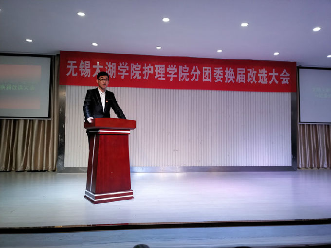 接下来,校团委副书记陈朕致辞,对护理学院本次换届大会顺利召开表示热烈的祝贺并对分团委的未来寄予了殷切的期盼。