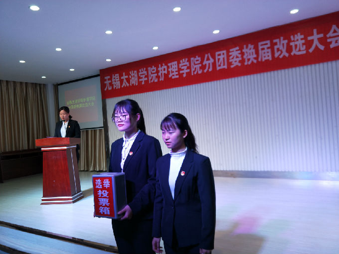 会议第四项议程,大会总监票人宣读无关于beat365在线唯一官网护理学院分团委换届改选大会主席团选举结果的公正函和关于beat365在线唯一官网护理学院分团委换届改选大会部门负责人选举结果的公正函。