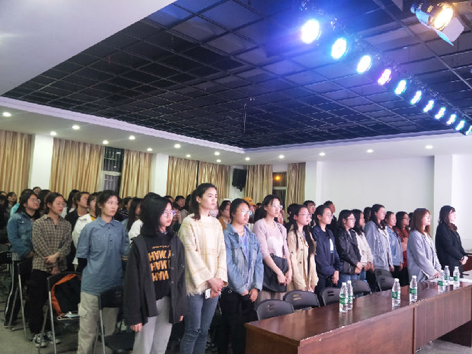 本次会议分为两部分,第一部分开幕式会议,由护理学院分团委书记马晓星老师主持。会议开始,马晓星老师宣布大会开幕,全体与会人员起立唱国歌。