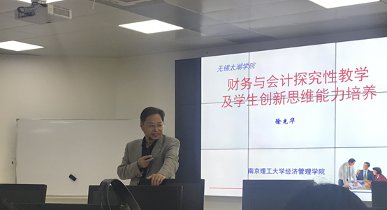 2019年4月4日,南京理工大学经济管理学院博导徐光华教授来到太湖学院,为会计学院全体教职工带来了“财务与会计探究性教学及学生创新思维能力培养”的讲座,讲座由beat365官网副院长唐红珍主持。