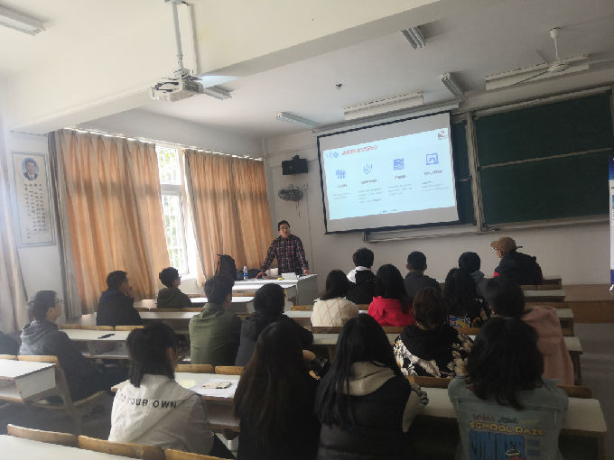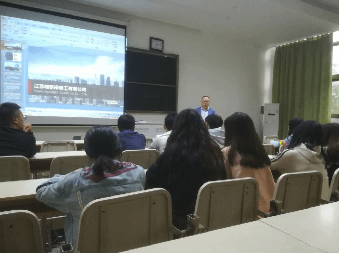 无锡金城幕墙装饰工程有限公司主讲人围绕公司的成立、发展现状、荣誉获得、未来发展等方面做了全方位的介绍。让学生们对无锡金城幕墙装饰工程有限公司有了简单初步的了解。之后主讲人肖经理以PPT展示的形式介绍了公司的岗位职责及人才培养机制,并接受现场提问,与同学们做了现场交流。