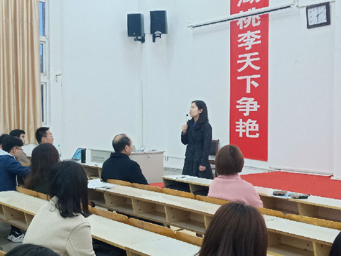 首先,由英语系主任万燕和日语系主任许钰芳分别向全体学生致辞。两位老师从专业角度谈及她们对考研的看法,并告诉同学们考研即是从零到一的过程,所以一旦下定决心决定考研就不要放弃。在考研的路上,学校一定会全力配合,根据需求也会开设二外等相关辅助课程。最后,两位系主任真挚地祝福全体同学:希望更多的同学在考研的道路上焕发光彩,金榜题名,祝考研成功。