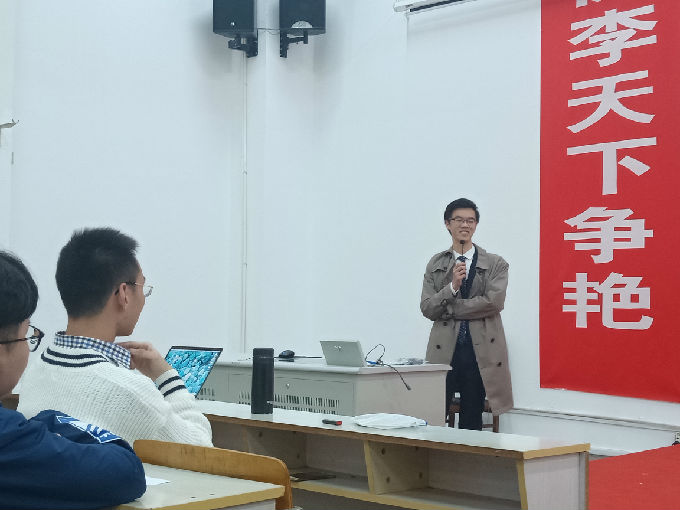 接下来由英语专业武秀峰、日语专业李丽媛、商务英语专业李梓杰三位优秀学生代表为大家做考研动员。三位同学都从自身角度发表了对考研的看法,并用他们的决心和信心感染了现场很多同学。