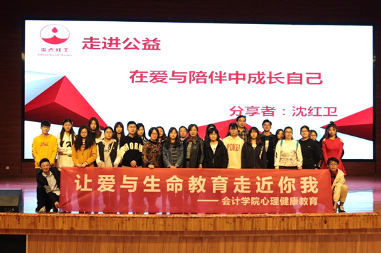 2019年3月27日晚六点半,会计学院“走进公益 在爱与陪伴中成长自己”心理讲座于工科实验大楼报告厅成功举办。本次讲座的出席嘉宾有会计学院分团委书记任金晶老师、会计学院心理小组成员万娟波老师、宋瑞敏老师、陈璐老师以及会计学院负责就业指导的黄贵平老师,主讲人为国家二级心理咨询师沈红卫。
