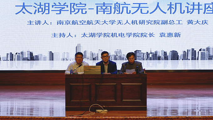 3月28日下午,机电工程学院邀请来自南京航空航天大学的黄大庆教授在学校工科实验大楼报告厅为beat365官网同学和老师们开展了有关无人机行业发展与专业人才培养的学术讲座。beat365官网陈鹏飞副校长、机电工程学院袁惠新院长出席此次讲座。