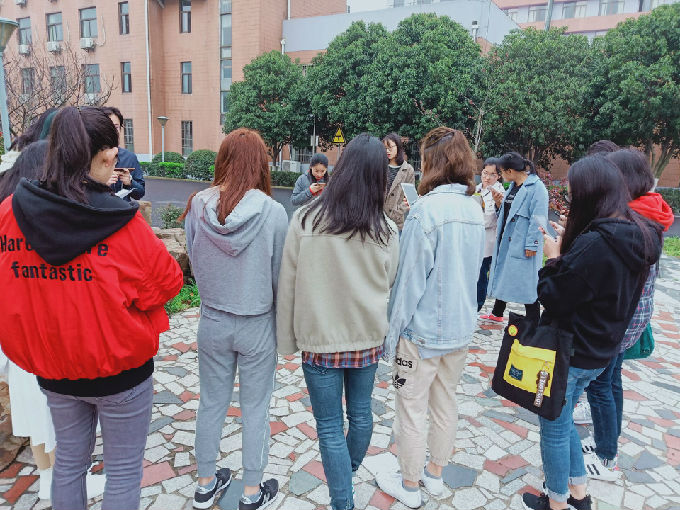 第二个环节是齐读。整齐的朗读声证明了同学们一定程度上理解了新闻稿的内容,即使会有偶尔的发音不准确,但可以听听身边其他同学的发音、语音、语调,相互虚心学习,改正错误,一同进步。最后是学长的学习经验分享,包括部分朗读技巧传授。文稿中难免有长难句,为了流利的通读全文,学长教大家根据句子成分去断句,句子成分弄懂后能更好地理解长难句,否则生硬且错误的断句不但读不通顺而且不好理解。根据不同的句型、否定词等使用不同的语调,在练习当中模仿音频的语音语调,更有利于培养语感。