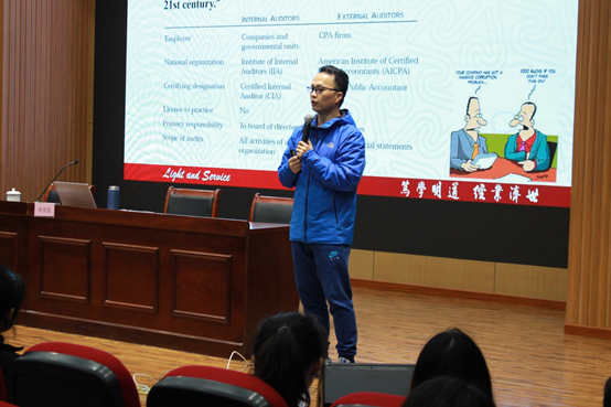 会上,江南大学朱佳俊老师向与会人员分析了内部审计轮换需求与模式下的核心和要点,并详细介绍了其中的分险与补偿内容。我们从中学到内部审计轮换必须考虑轮换分险及补偿策略和要识别、分析和处置轮换分险,这对我们以后的会计专业尤为重要。虽然在未来会面对各种分险和挑战,但同学们听完表示收获颇多,对会计这门专业更加了解。也对未来会计道路更加明确和有信心。
