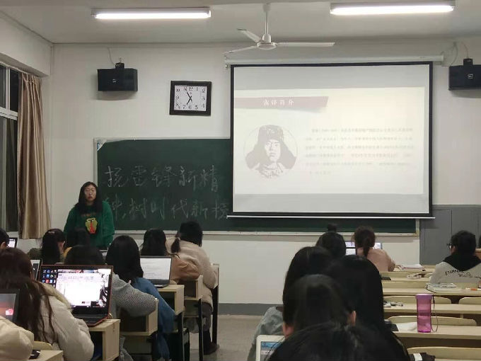 然后,团支书向同学们介绍雷锋同志的生平重要事迹,并播放有关改革开放40周年中国各地发生巨大变化的视频。在团支书声情并茂的解说之下,同学们仿佛身临其境,个个都听得聚精会神,不错过任何一个精彩的瞬间。