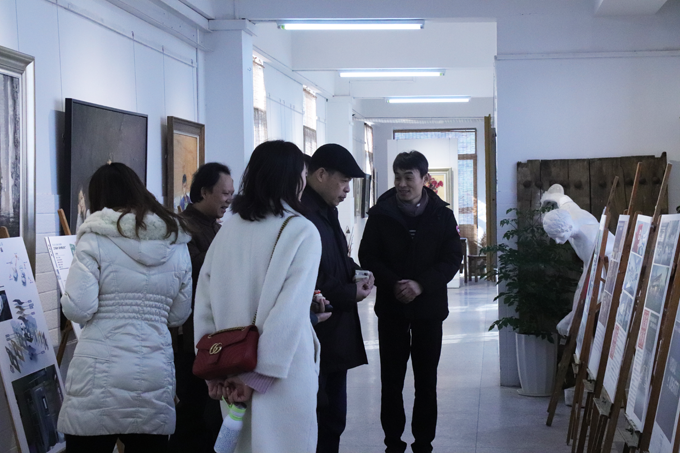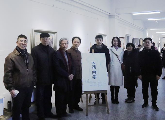 本网讯 2018年12月28日上午,艺术学院产品设计专业卢利波、环境设计专业苏宇、视觉传达设计专业廖春苗和魏旭四位老师在6号教学楼7楼画廊举办《太湖·四季》太湖友谊四人展。时光轮回,太湖最美。最美的时光,我们在这里。艺术学院院长张锡,副院长朱宗明、李方明和朱宁,艺术学院党总支副书记武蓓蓓,视觉传达设计专业孔德扬教授等学院领导以及艺术学院部分师生代表参加了本次展览活动。