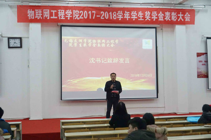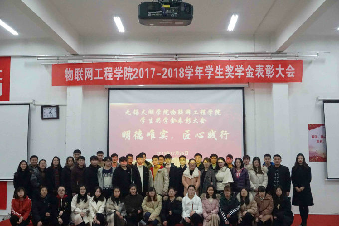 为促进学院学风建设,营造树立榜样,赶超先进的良好学习氛围,发挥优秀学生模范带头作用,物联网工程学院于12月26日在7号楼102举办2017-2018学年学生奖学金表彰大会。