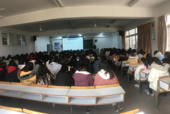 首先是莫老师宣讲,莫老师是中华医学会医学伦理专业委员会护理分会委员、中国生命关怀协会委员、江苏省康复医学会护理专业委员会委员、无锡市骨科专科护士基地具体负责人。她从介绍无锡市第九人民医院的基本概况开始,依次阐述了九院的发展历程、科研成果,人文教育以及护士职业规划。其中,莫老师重点向我们介绍了医院的人文教育氛围。尤其是完善的基础医疗培训设施和丰富的护士特色文化建设活动十分具有特色,调动了同学们的积极性和热情,也引起同学们许多向往。同时,莫老师也向我们展示了我们护理学院留院工作的优秀学姐们,以此来激励同学们向更高的目标发展。