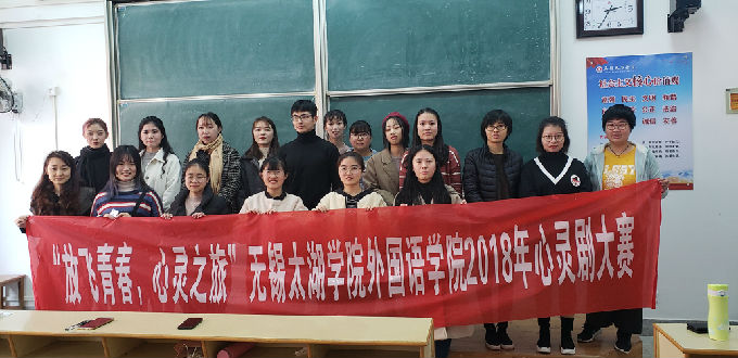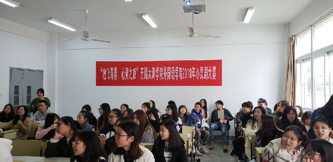 11月22日下午一点半外国语学院于八号楼成功开展以“放飞青春,心灵之旅”为主题的心灵剧大赛。出席活动的人员包括任思悦、章蕾、李琦、蒋逸莉老师,外国语学院大二及大三学生。
