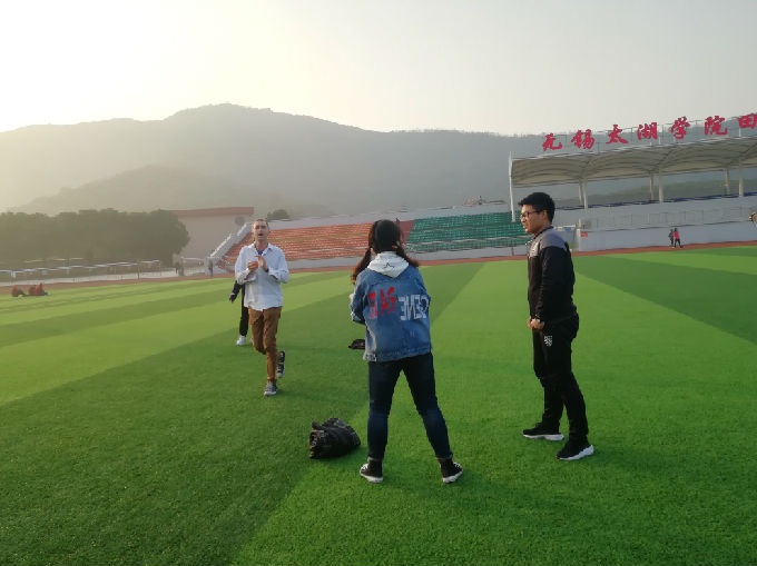 本次英语俱乐部活动选择在操场进行。一是想让大家放下手机,走出寝室,锻炼自己,不要终日缩在被窝里,一脸兴奋地盯着手机,吃着瓜。我们应该多欣赏一下外面的世界,多多结交现实生活中的朋友,看看别人是如何积极健康的生活。二是希望大家能大声说英语,勇于对陌生人用英语来表达自己。英语本不应该是书本上深硬的单词,它是我们生活中一部分,沟通的桥梁,是我们展现自己另一面的最好的工具。