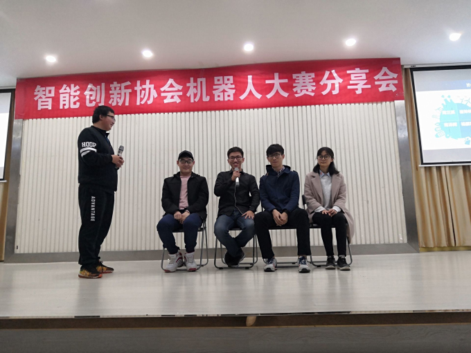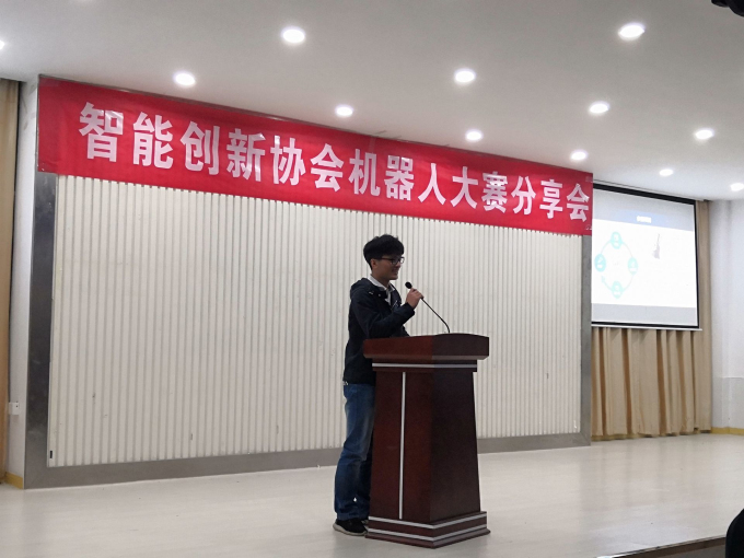 接着,此次参赛的同学们分享了他们这次的比赛经历。几位同学分别负责不同类型的机器人比赛项目,他们的发言既有赛场前的艰苦努力、比赛时的紧张刺激,也有赛后的总结分享。真诚的言语间,满是对机器人的热爱和对智创协会的留恋,他们衷心希望协会能越办越好,在校园内发展壮大。
