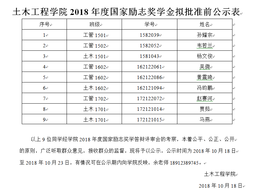 2018年10月17日下午,beat365在线唯一官网土木工程学院2018年国家励志奖学金答辩评审会在学院210会议室举行。本次答辩评审会由土木工程学院党总支副书记余波主持,学工秘书朱敏,辅导员陈利娟,戎婷竹,周佳妮,钱紫云作为评委参与此次答辩。