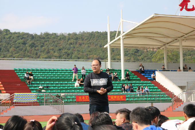 在比赛前,土木工程学院党总支副书记余波发表致辞,他表示生命在于运动,并鼓励同学们要走进操场,投身运动,保持健康。要在运动中磨练自己的意志,培养团结拼搏的精神;要在运动中收获友谊,增进情感;要通过运动展示当代太湖学子的精气神,以饱满的精神面貌迎接即将到来的本科教学合格评估,贡献自己的力量!