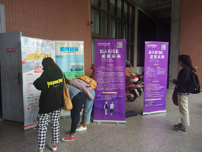 随后,无锡瑞思外语培训有限公司代表Eagle老师在同学们的掌声中走向讲台。Eagle老师铿锵有力的声音勾起了同学们的注意力。Eagle老师强调,瑞思是一家首次再美国上市的中国培训公司,他们企业针对4~12岁的孩子科研了相应的教程。Eagle老师还强调,想要进入瑞思,有爱心是必要的条件。因为瑞思办学为儿童,招贤为儿童,所以瑞思是一家有爱有情的企业。Eagle老师表示,瑞思还会有每月的生日庆祝,每个节日庆祝,都是为学生提供的良好的交流学习环境,目的打造一个能说会道的新时代接班人。接着,也是在瑞思工作的优秀学姐分享她的工作心得:坚持、努力、有爱,这些都是必不可少的工作态度。
