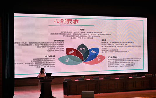 外国语学院大学英语部副主任黄旭老师首先对新生们提出了大学生活的期望,建议新生们从大一开始树立自己理想和目标,学会利用和分配时间,减少对手机的依赖,不要大把时间花费在玩手机上。随后,黄老师着重向新生们介绍了大学英语四级考试相关的内容,如考试时间地点、技能要求、题型等。同时还分析了四级证书的内容,向新生们讲解了报考大学英语四级的四大原因。黄老师也简要的介绍了大学英语课程,并说明了课程设置相关问题。最后对新生们提出学习英语的意见,建议同学们多看英美剧和听英语歌,多参与英语学习活动和比赛。