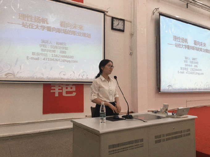好的职业规划能帮助同学们少走很多弯路,海辉律所胥献文以“理性扬帆,看向未来--站在大学看向职场的职业规划”为主题分享了其在西南政法大学学习生活期间的实践与职业规划,通过其自身的经验所得,向大家展示了规划的重要性,并把自己求职路上的所见所得生动的展示了出来,引起了同学们的关注与反思。部分学生会因为目标不明确、不知道对什么专业感兴趣、不知道想去哪座城市、不知道自己有多大的提升空间等原因而苦恼,胥律师建议同学们尽早选择出最适合自己的专业和院校,规划是让人取得成功的捷径,在确定好专业和院校后,就要开始制定复习计划了,同学们需要制定的是一个科学、严谨、在时间上操作性很强的复习规划。