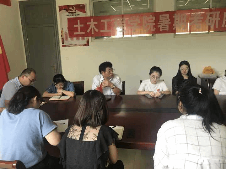 为了进一步了解2019届暑期留校复习的考研学生的学习生活情况,给他们加油鼓劲,使他们更加明确自身的奋斗目标和努力方向,土木工程学院于8月9日下午,在学院210会议室召开2019届学生暑期考研座谈会。土木工程学院副院长张军,党总支副书记余波,土木工程系主任贺方倩,学院教授崔清洋、毕远志,校级教学督导刘颖,新任教师翟文清、高网芹以及2019届暑期留校备考的学生参加了此次座谈会,会议由余波副书记主持。