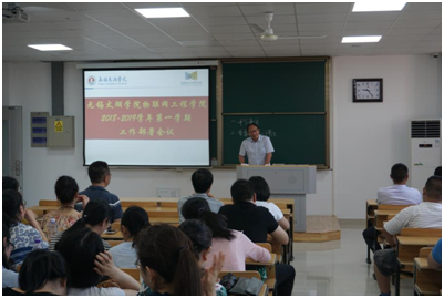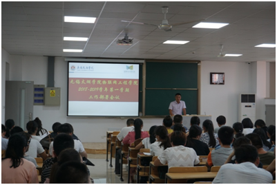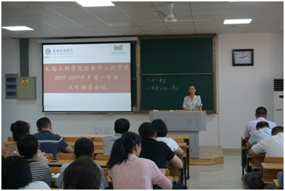 为了明确新学期的教学任务和工作计划,2018年8月31日,物联网工程学院全体教职工于工科实验大楼A403召开了2018-2019年第1学期工作部署会议。学院党总支副书记沈峰、副院长方宁生、副院长李莎分别就新学期的党建工作、学生实习和实验室建设、教学工作等方面做了详细汇报和规划。沈峰书记主持本次会议。