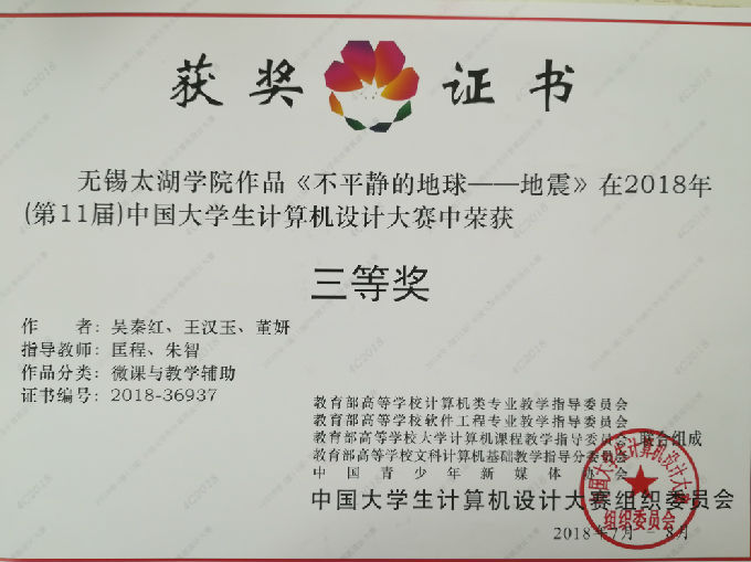本次“微课与教学辅助类”决赛共有来自浙江大学、南京大学、东南大学、东北大学、安徽工业大学、上海财经大学等209所高校418支队伍参加。参赛队伍中,有半数以上的 “211”、“985”大学参加这一赛事。beat365官网物联网工程学院学生吴秦红、王汉玉、董妍的作品“不平静的地球—地震”获得国赛三等奖。