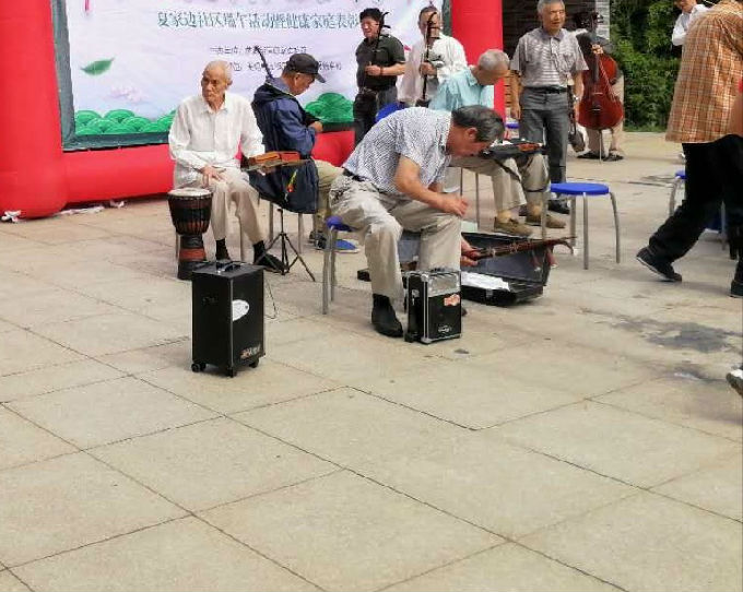 一切准备好之后,负责人告诉我们马上开始了,我们团队的“主持人”便上台了,她们拿着精心准备的主持词,将热情融入话里,井井有条的掌控着节目的流程。此次我们不仅给社区提供了主持人和志愿者,我们也欣赏到了许多精彩的表演。爷爷们拉着各种各样的乐器,奶奶唱起了锡剧,阿姨们准备了精彩的广场舞,还有太极,歌剧……