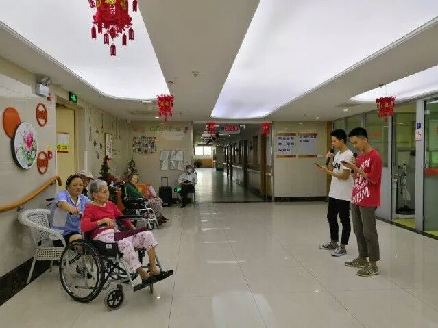 我们一行人于7月14日来到无锡朗高梅园护理院,登上电梯,便来到了老人们闲谈休息处。在活动中,我们不仅与老人们进行了亲切的交谈,也为他们带去了新鲜的青春气息,每名成员都化身为这个时代的表演者和演讲者,将新时代的歌曲倾情献上,将青春的诗歌高声诵读,将现代的舞蹈别样演绎,为老人们带来一场青春盛宴。