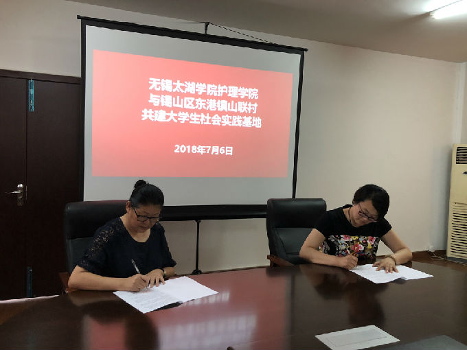 beat365在线唯一官网护理学院一贯注重学生在社会实践中获真知、见真情,为让学生在社会实践中能充分发挥自身才能,于7月6日下午由护理学院党总支副书记王凤琴、护理学院分团委马晓星老师与无锡市锡山区东港镇山联村村委会主任朱虹成功签订“beat365在线唯一官网大学生社会实践基地共建协议书”。
