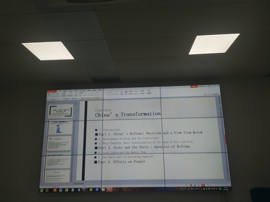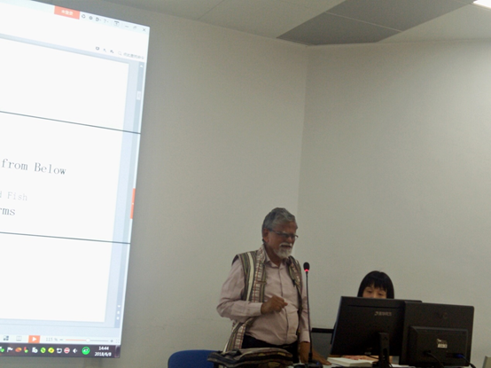 在莫罕迪教授做学术报告之前,徐院长首先介绍了印度社会发展现状以及本次邀请到的莫罕迪教授及其夫人。随后莫罕迪教授将中国的转型分为:1.中国改革:回顾与展望;2.国家与政党:改革的序幕;3.对人的影响。莫罕迪教授带来了一本他新著的书,里边是凝聚了他四十年对中国改革开放的研究成果,其中就涉及了滨湖区改革开放后的面貌变化。谈到第二部分时,教授认为中国在改革开放中制定的相关法律、法规是对那时期有支持作用的。但从最高层面制定有丝毫错误的或者说成功带来的很小的负面因素在基层角度是很难去纠正的。第三部分,教授认为工人、农民是被影响程度最深的团体,其中乡镇企业的发展对农民以及工人的影响是起到积极作用的,他还提到在改革开放进程中女性也是受到很大的影响,包括在家庭、教育以及社会地位方面都发生了或大或小的变化。