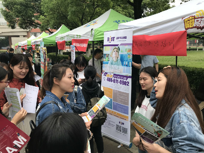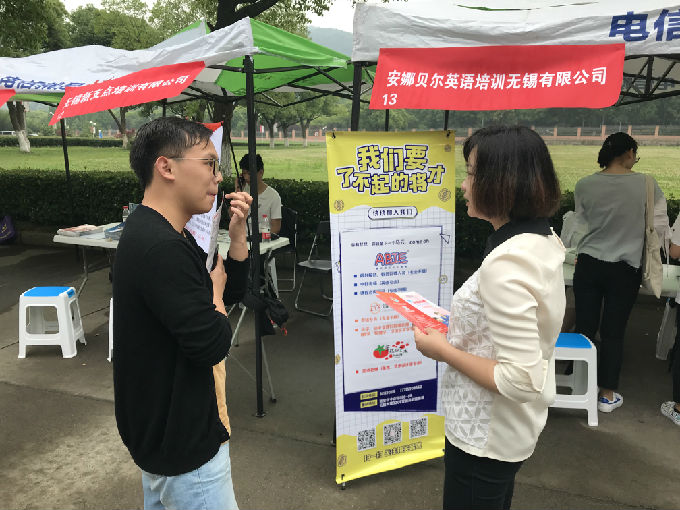 为了更好的能为大四的毕业生提供就业服务,5月25日上午外国语学院召开专场招聘会,邀请了阿里巴巴常熟服务站、无锡朗悦英语学校、无锡环球雅思培训中心、无锡朗阁雅思培训学校、北京爸爸的选择科技有限公司、上海统一星巴克咖啡有限公司等四十家大中型企业来beat365官网进行面对面招聘。