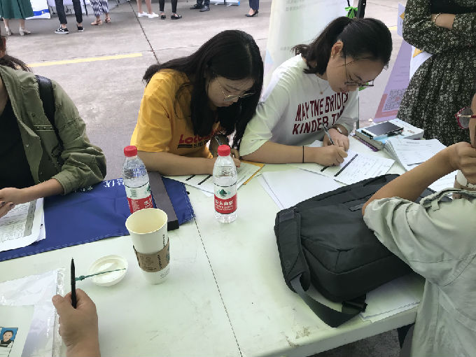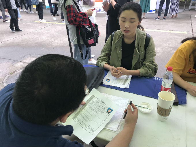 本次招聘会除了大四的学生以外还吸引了众多大三甚至大二的学生前来体验感受氛围,有许多同学围拢在面试点前面,浏览招聘单位简介的,积极与招聘单位交流。经一位老师分享,应聘者要寻找对口的职业,要有一定程度的专业技能和口语水平,当然,拥有一定的工作经验是最好不过的了。