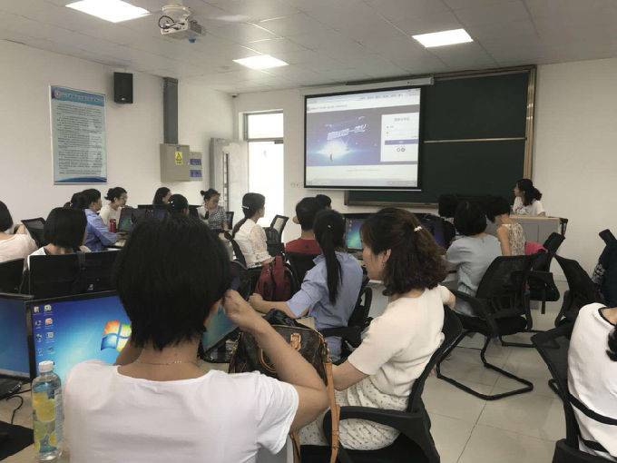 5月18日下午1点,蓝鸽平台技术专家朱潇老师为外国语学院的英语系、商务英语系、大学英语部的老师进行了关于智能平台的培训与讲解,包括智能备课平台,全景智能作文批阅平台、外研社iTEST测试平台的使用方法。蓝鸽专业化语言实验室是针对部分区域教育经费有限而研发的纯软件版语言实验室产品。该产品能够将普通电脑室快捷的转换为专业化的语言实验室,具有成本低,功能全,系统化、专业化等突出优势,在实现“一室两用”的前提下,将更多先进的教育思想融入到软件设计当中,从而成为一款既满足教学基本需求,又能沟通和传递新教学理念的专业化教学平台。