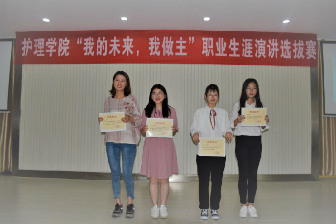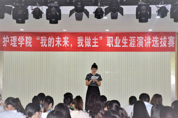 2018年5月17日下午1点,护理学院在大学生活动中心举行了“我的未来,我做主”职业生涯演讲选拔大赛。本次比赛邀请了护理学院分团委书记马晓星,护理学院专业课老师于康英、杨孟雪、辅导员詹雪丽、马莉担任评委。