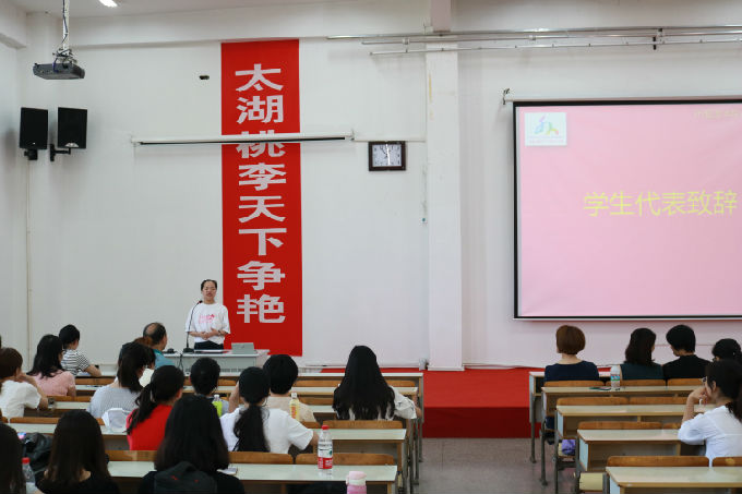第二位学生代表是2015级大三学生徐璨同学,她的话简练但是鼓舞人心,她告诉我们:考研是场持久战,虽然很累,但是日后值得回味的日子,往往都是这些咬紧牙关的日子,所以挺住,我们能赢。