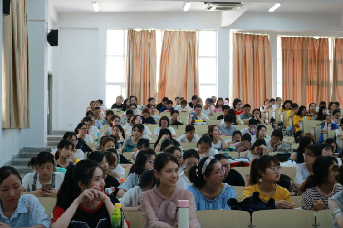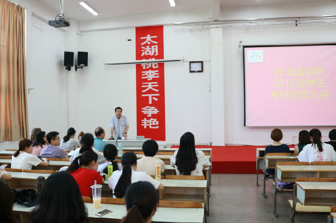 2018年5月16日中午12:30,外国语学院于7号楼102教室举办了"外国语学院2015级学生考研动员大会",本次大会由党总支副书记俞昊波主持,包通法院长、刘荔副院长、吴旻昊副院长及各系主任一同参加本次大会。