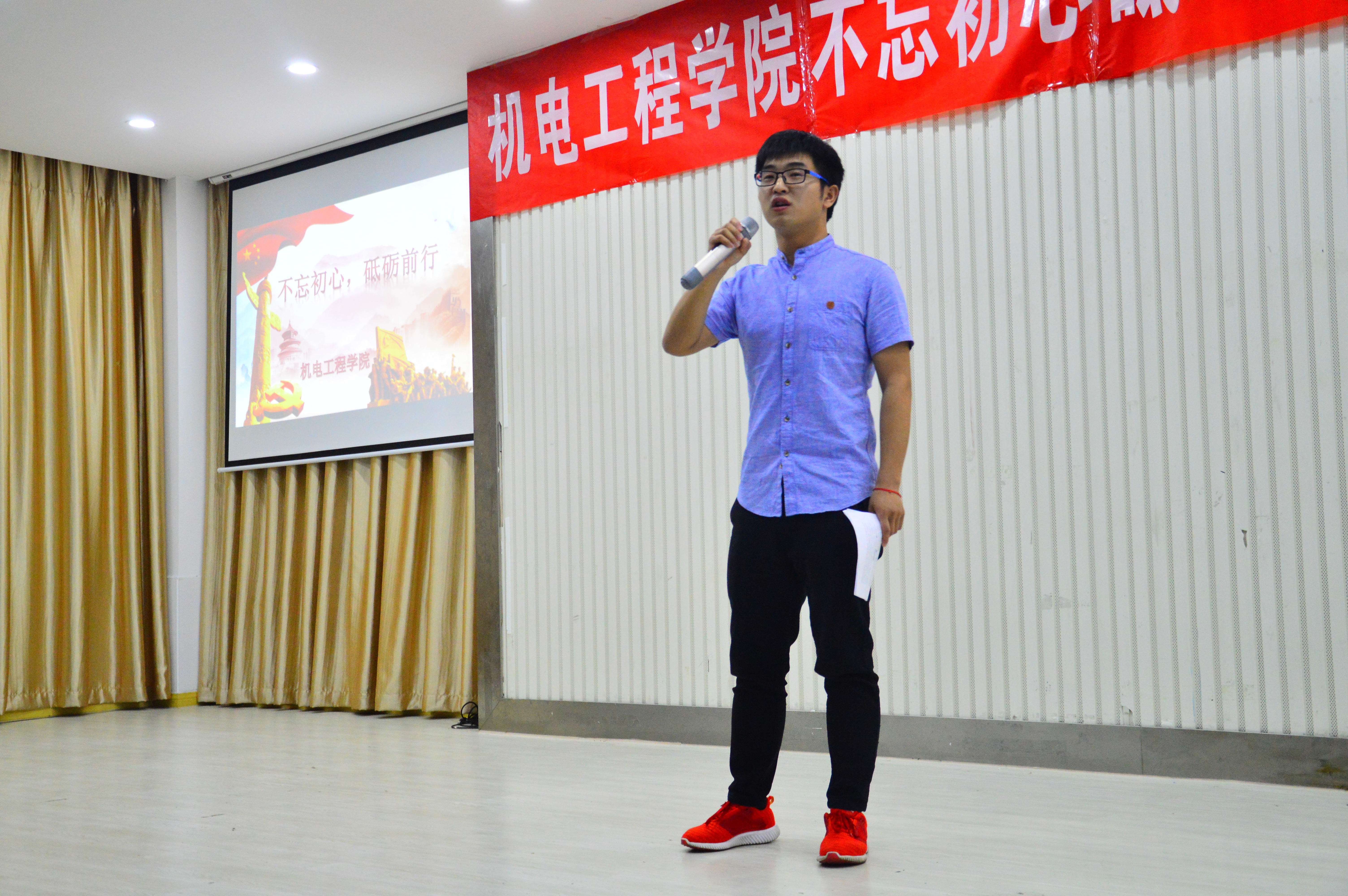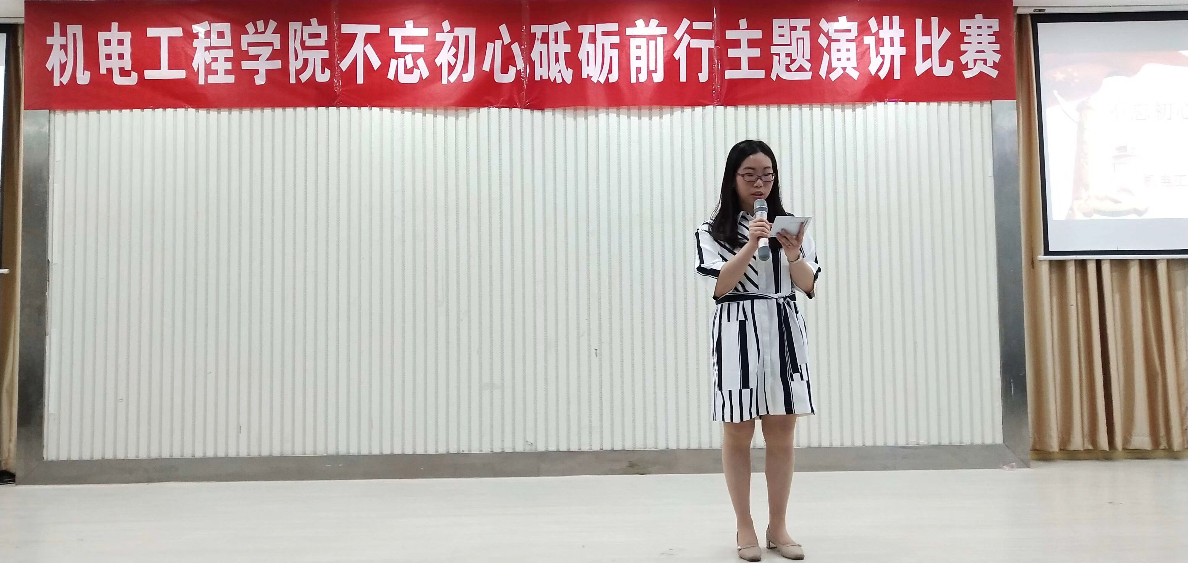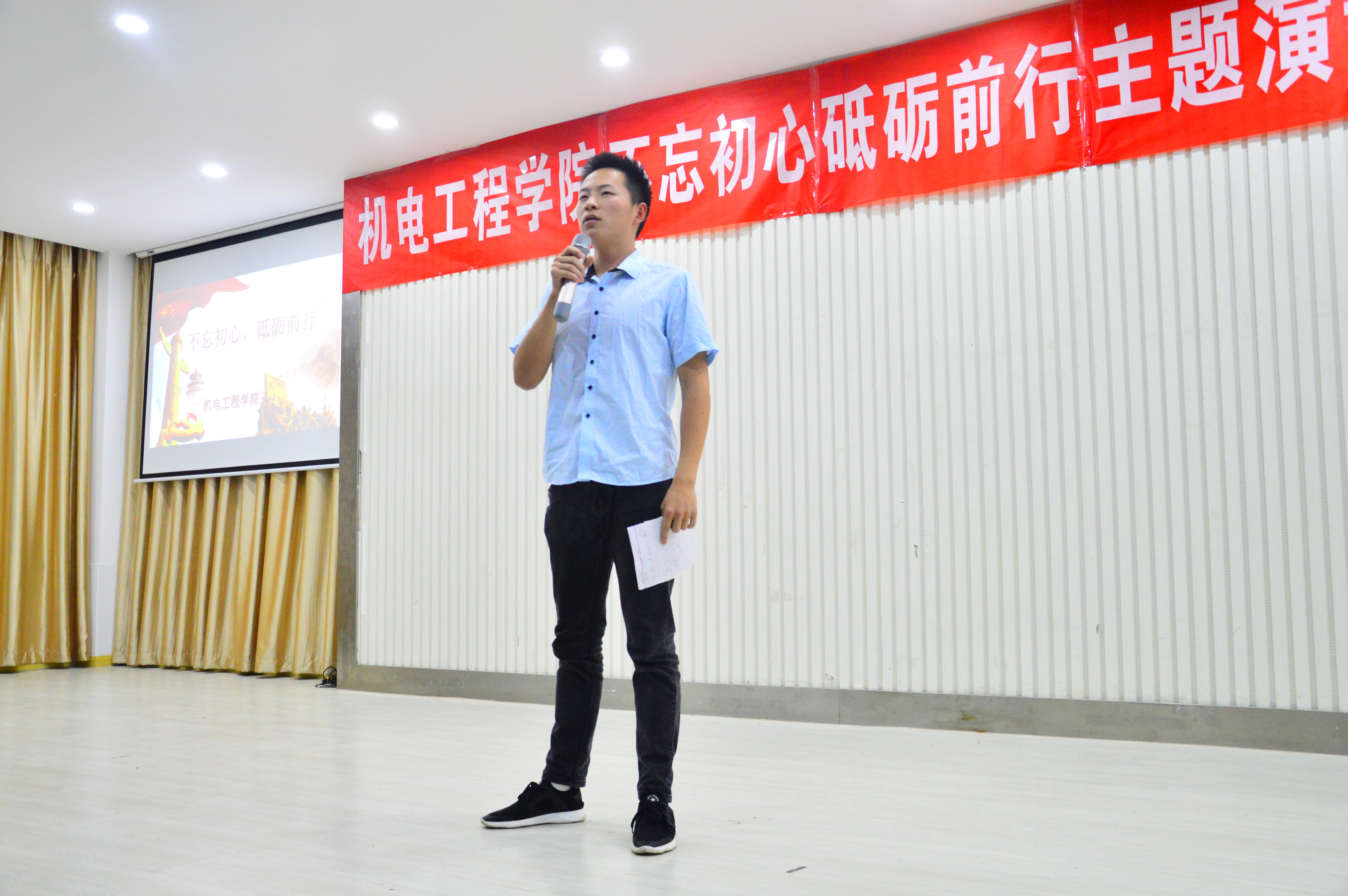 为丰富学生校园文化生活,紧跟十九大的热潮,创造和谐、奋进、创新的良好氛围,在全院形成一种人人学习先进、崇尚先进、争当先进的良好局面,把创先争优活动真正落到实处,机电工程学院于2018年5月9日晚在大学生活动中心举办了“不忘初心、砥砺前行”主题演讲比赛。本次比赛由机电工程学院分团委书记许心怡老师主持,机电工程学院实验室主任姜斯平教授、学工秘书邓珂老师、辅导员明耀堃老师作为评委也参加了这次活动。