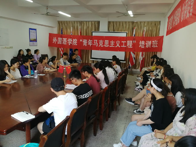刚过完恩格斯同志留下的五一劳动节,外国语学院党总支副书记俞昊波、分团委指导老师许晓艳于五月十五日,带领41名优秀青年学生,举行了“青年马克思主义工程”培训班开班仪式。