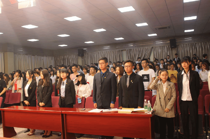 会议最后一项议程,会计学院分团委书记成丹铭老师宣布大会闭幕,全体代表起立唱国际歌。