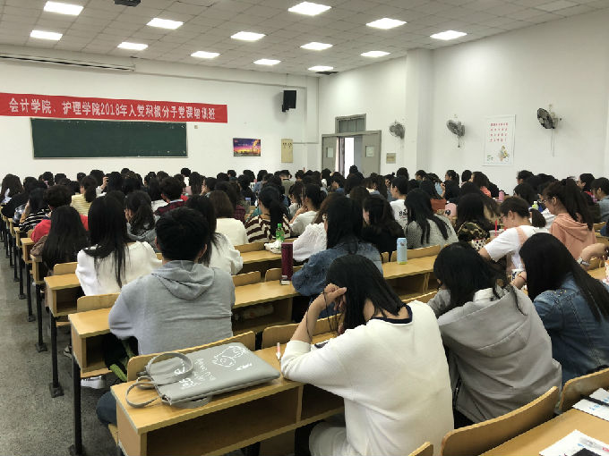 2018年4月19日下午1:30,护理学院、会计学院召开2018年入党积极分子党课培训班,两个学院的入党积极分子全部到场,表现积极。护理学院党总支副书记王凤琴为党课培训班做开班动员,入党积极分子培训班是加深对党的基础知识和习近平新时代中国特色社会主义思想的了解和认识,坚定共产主义理想和中国特色社会主义信念,增强“四个意识”、“四个自信”,树立正确的入党动机,自觉按照党员的标准严格要求自己,践行社会主义核心价值观,在思想上和行动上积极向党组织靠拢。