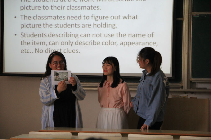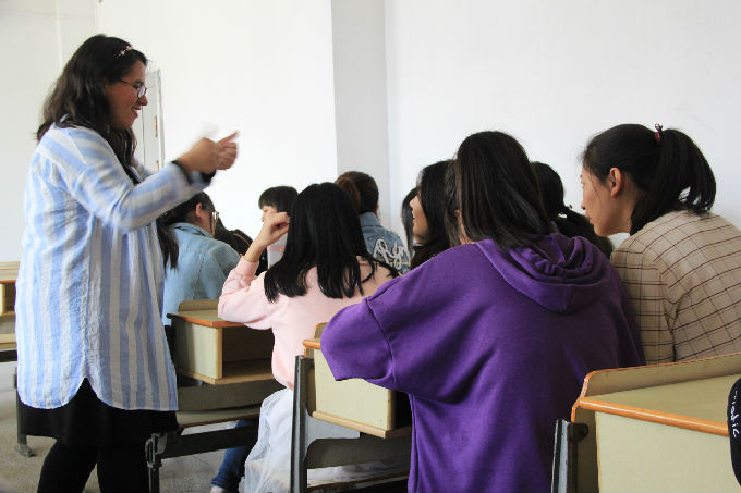 铃声响起,Bella正式开始上课,首先她简单教我们一些单词,再逐渐深入到句型、语法、文章。由点至线,由线至面,逐步地让学生理解、接受知识点,从而化为自己的知识去运用它。Bella说的详细又全面,同学们听的也很认真,生怕遗漏了哪句话。英语是母语的人的确是优势,但是我们的同学经过后天努力并不会太迟。量变促成质变,只有不努力的人,绝不会有学不会的人。