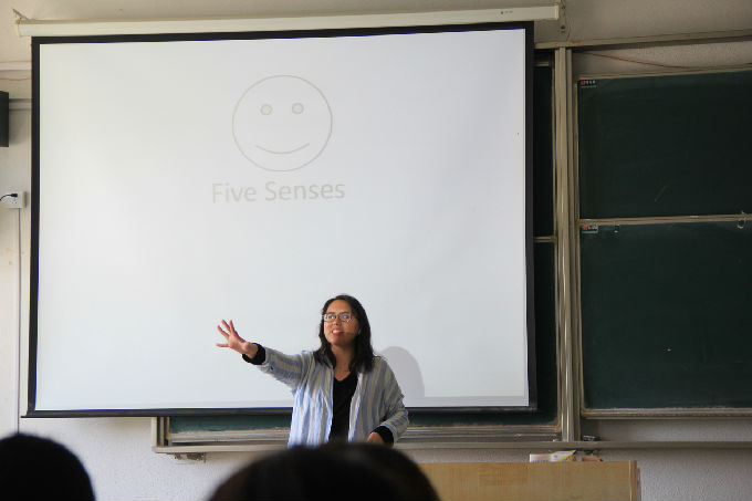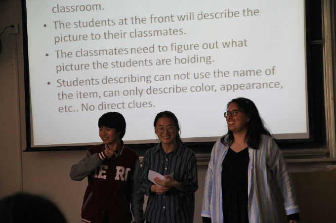 讲课告一段落,Bella让我们开始自由讨论。英语口语提高的最快方法,就是身处全是英语的语言环境。一瞬间,教室充斥着英语的对话回响。Bella则经过每个对话小团体时都停留一下,纠正一下她们的错误,并用流利的英语和她们对话、交流。经过小编时,也亲切的打了个招呼。小编也抓住机会采访了一下我们可爱的Bella,在英语俱乐部里教学的感受如何。Bella毫不犹豫地回答道,他们都是非常棒的学生,我为他们感到自豪,我教学的时候也非常开心。热情、自信、亲切,Bella真的是个非常值得我们敬爱的老师。