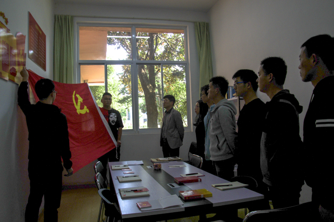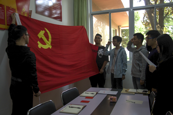 2018年4月19日下午四点,机电工程学院学生党支部在学院党员活动室隆重举行了新党员入党宣誓仪式。机电工程学院党总支副书记杨学圣、学生党支部书记许心怡、全体学生党员参加了此次活动。