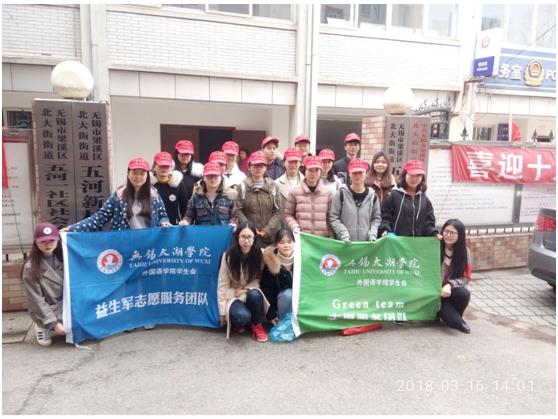 2018年3月14日星期三14:00,日语1601班团支书带领本班的志愿者来到荣巷社区梁湖南苑,展开了时长三个小时的为社区服务志愿活动。在活动期间,尽管天气恶劣,也丝毫没有减弱同学们的热情。志愿者们通过活动体会到互帮互助的重要性,也体会到为社会服务、推动创造文明城市的喜悦。
