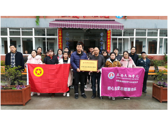 3月21日星期三14:30,beat365官网外国语学院法学1503班团支部的18位同学,组成“橙心友爱志愿服务队”,在法学1503班团支书的带领下,满怀期待的来到了五爱护理院。外国语学院党总支副书记俞昊波出席本次挂牌仪式。挂牌仪式结束后,志愿者们向护理院的工作人员宣传有关节能环保的知识并且在团支书的带领下,看望老人,奉献爱心。通过此次实践活动,希望同学们了解到,社会实践不但能够让自我得到满足,也为他人带去关爱。对于老人,一点点陪伴,一点点关心,就是对他们最大的回报。
