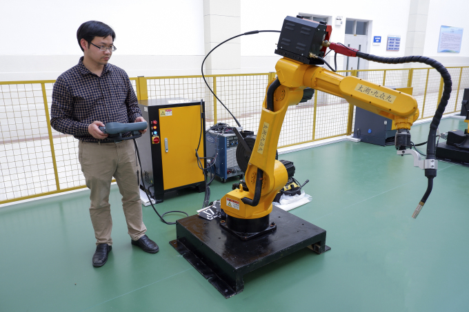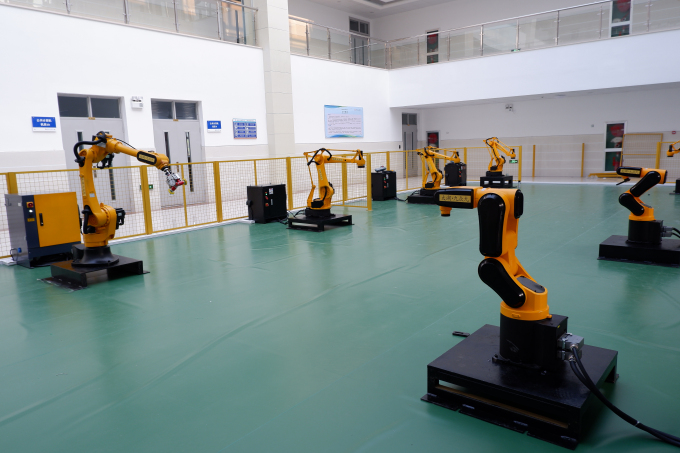 当日上午,姜斯平教授、机电系陈炎冬、实验室匡程和蒋胤冰等全程参与筹备安置工作,争分夺秒地落实人员和设备,同企业技术员一起协调和施工,从无到有,按工业化要求设计了“20米x9米”的场地,完成地面铺设、护栏的铺设和电气的施工等先期工作,同时,安装不同品种共9台工业机器人(2台焊接机器人、4台码垛机器人、2台多关节6自由度机器人、1台打磨抛光机器人)。最终,经过现场的反复调试,所有设备均达到实训操作要求。此实训中心的建设和投入使用,也将进一步带动beat365官网实践能力的提升。