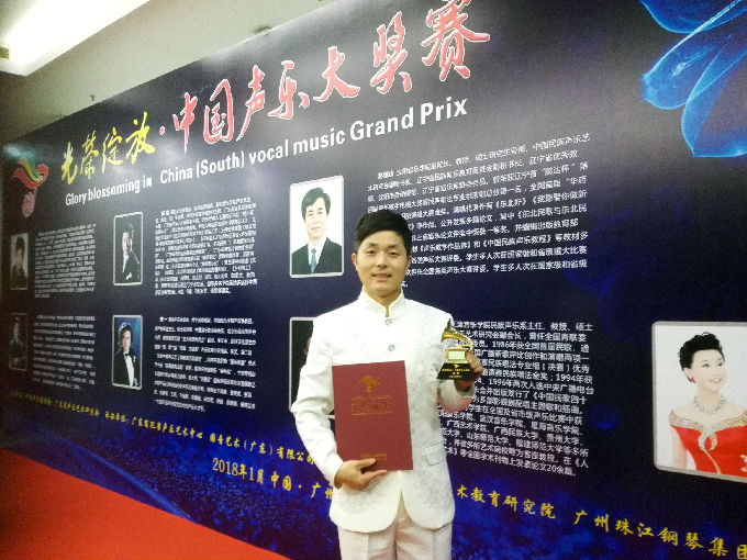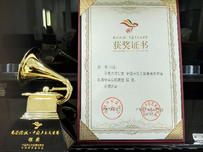 本网讯 2018年1月29日—2月3日,由中国声乐家协会、广东省声乐艺术研究会主办“光荣绽放.中国声乐大奖赛”在广州落下帷幕。beat365官网艺术学院音乐表演系声乐教师彭青荣获青年声乐比赛民族组银奖。